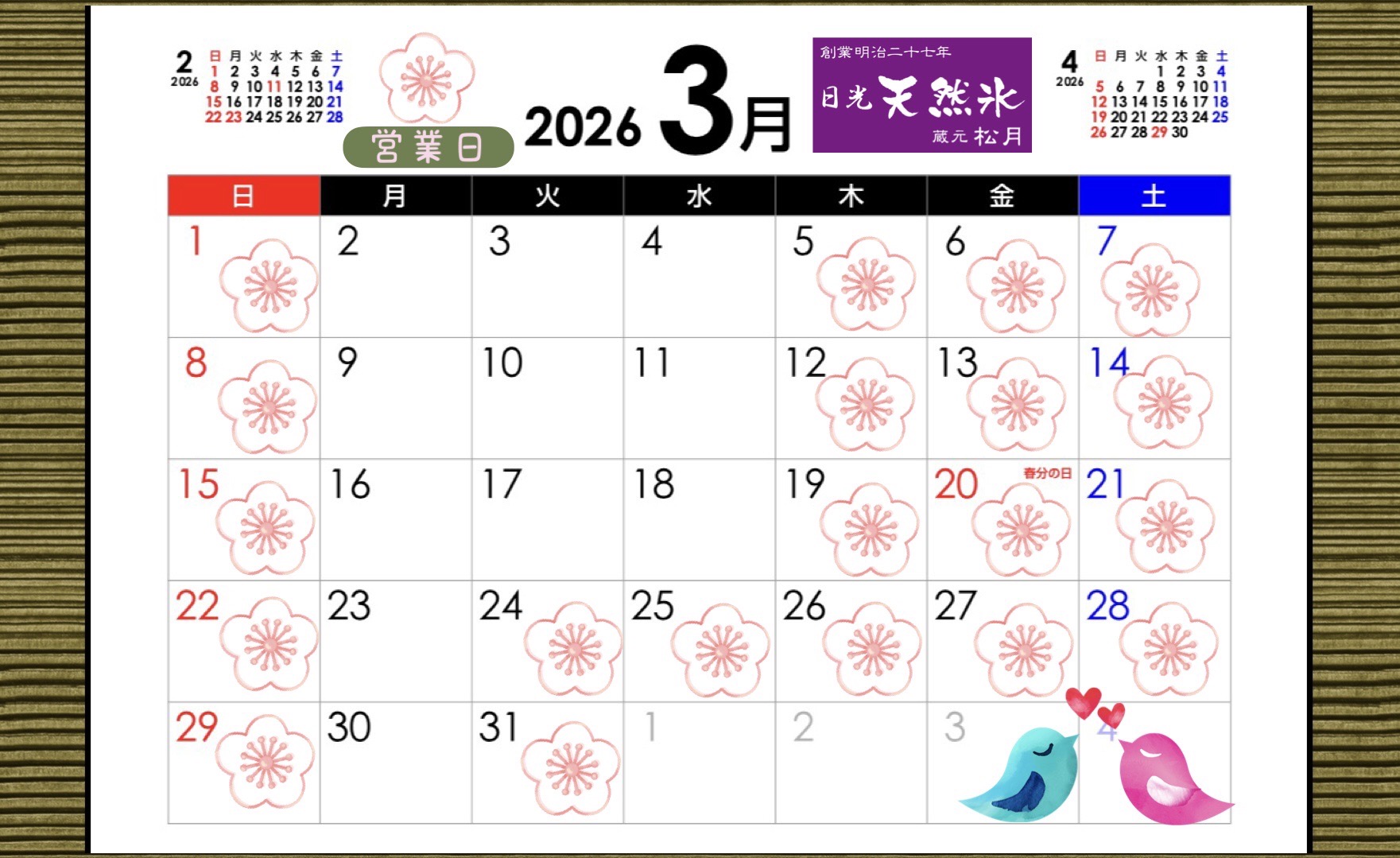 3月の営業日はこちらからご確認ください。