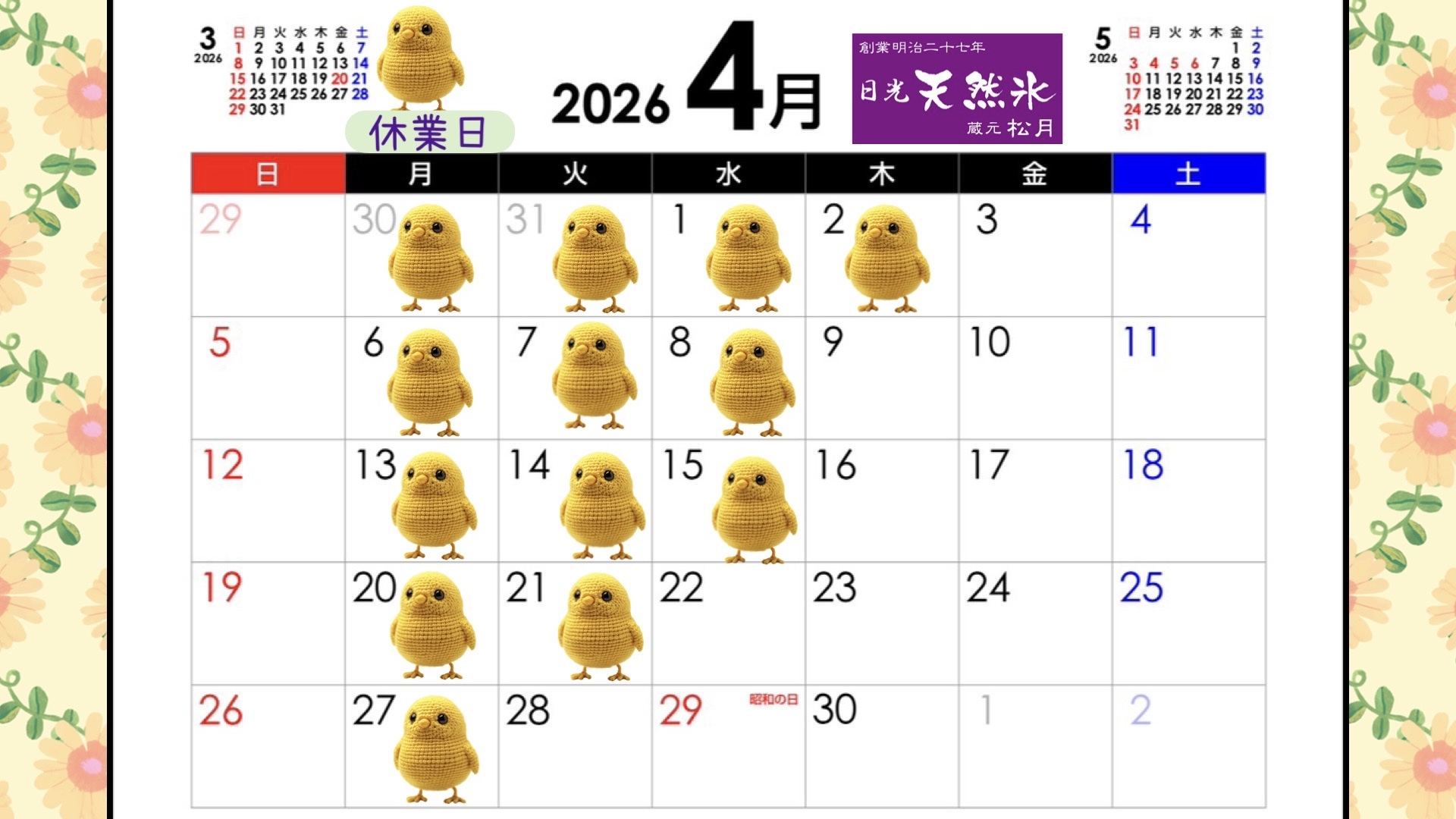 4月の営業日はこちらからご確認ください。